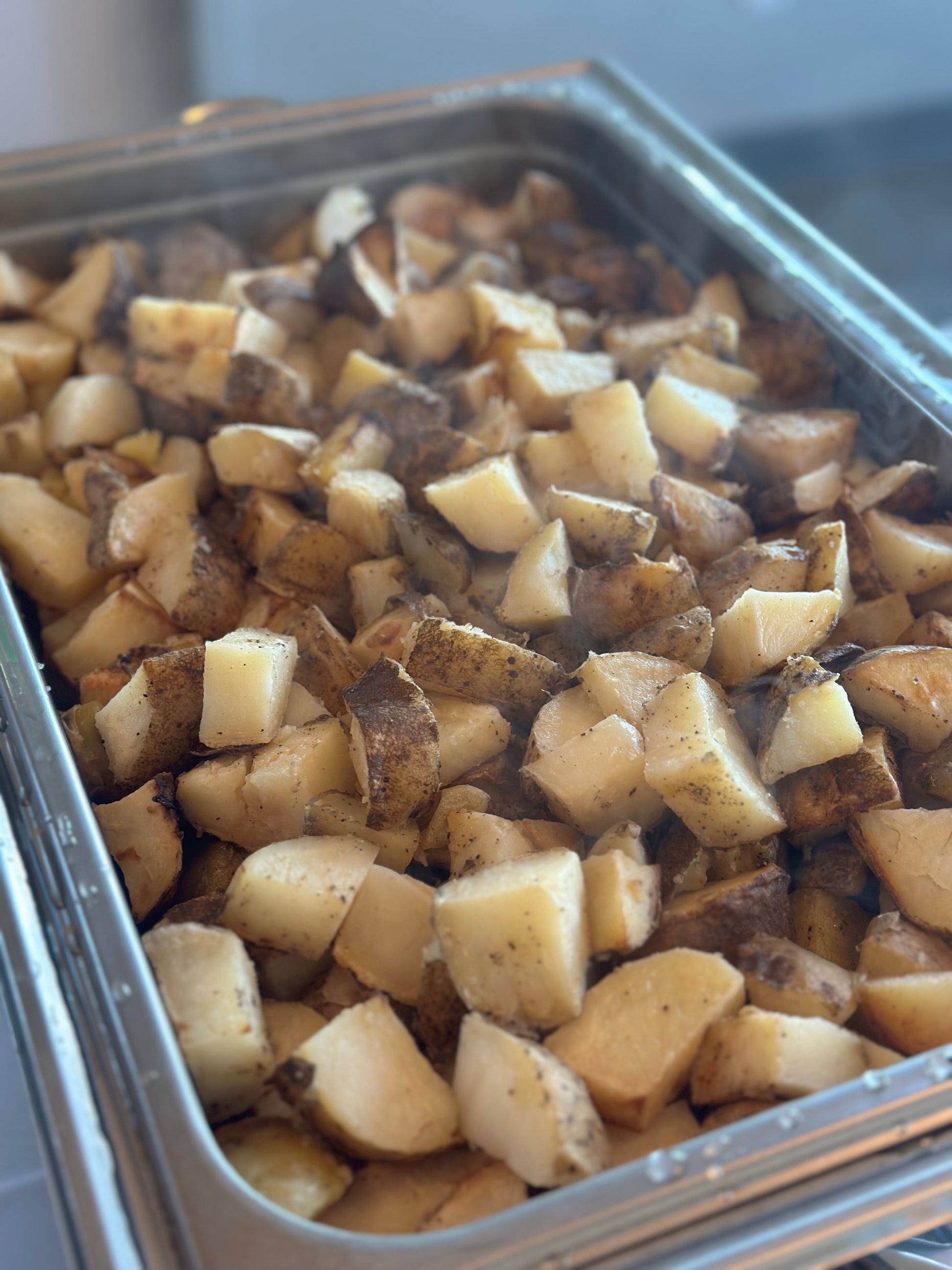 Garlic mashed potatoes, cheesy scalloped potatoes, herb-roasted baby potatoes, pesto penne Alfredo, Farfalle with rose sauce, Spanish rice, Creole rice, coconut scented rice